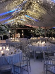 Le décor et la scénographie sont étudiés avec soin. Nappages, centres de table, verines, photophores, aménagement des buffets, décoration florale, illumination du quai d’arrivée et terrasses.